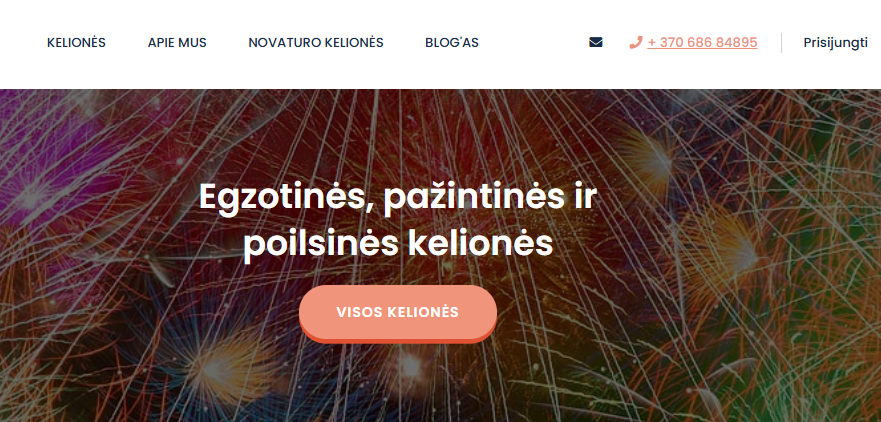 UAB BitHub sukurtas modernus ir patogus naudoti puslapis, pritaikytas kelionių agentūros poreikiams. Projektas prasidėjo nuo poreikių analizės ir dizaino koncepcijos pasirinkimo, siekiant sukurti vizualiai patrauklią svetainę.